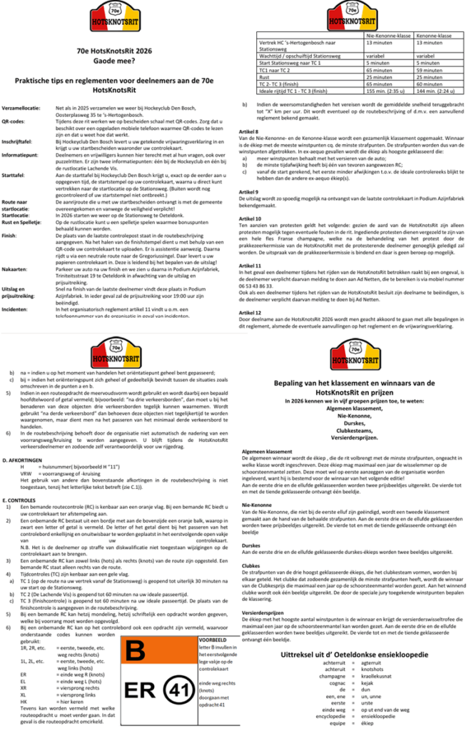 Het definitieve reglement voor de HotsKnotsRit 2026 is inmiddels vastgesteld.