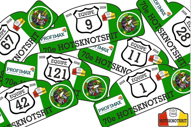 Dit jaar prijkt het logo van onze hoofdsponsor “PROFIMAX” op het HotsKnots rallyschild.